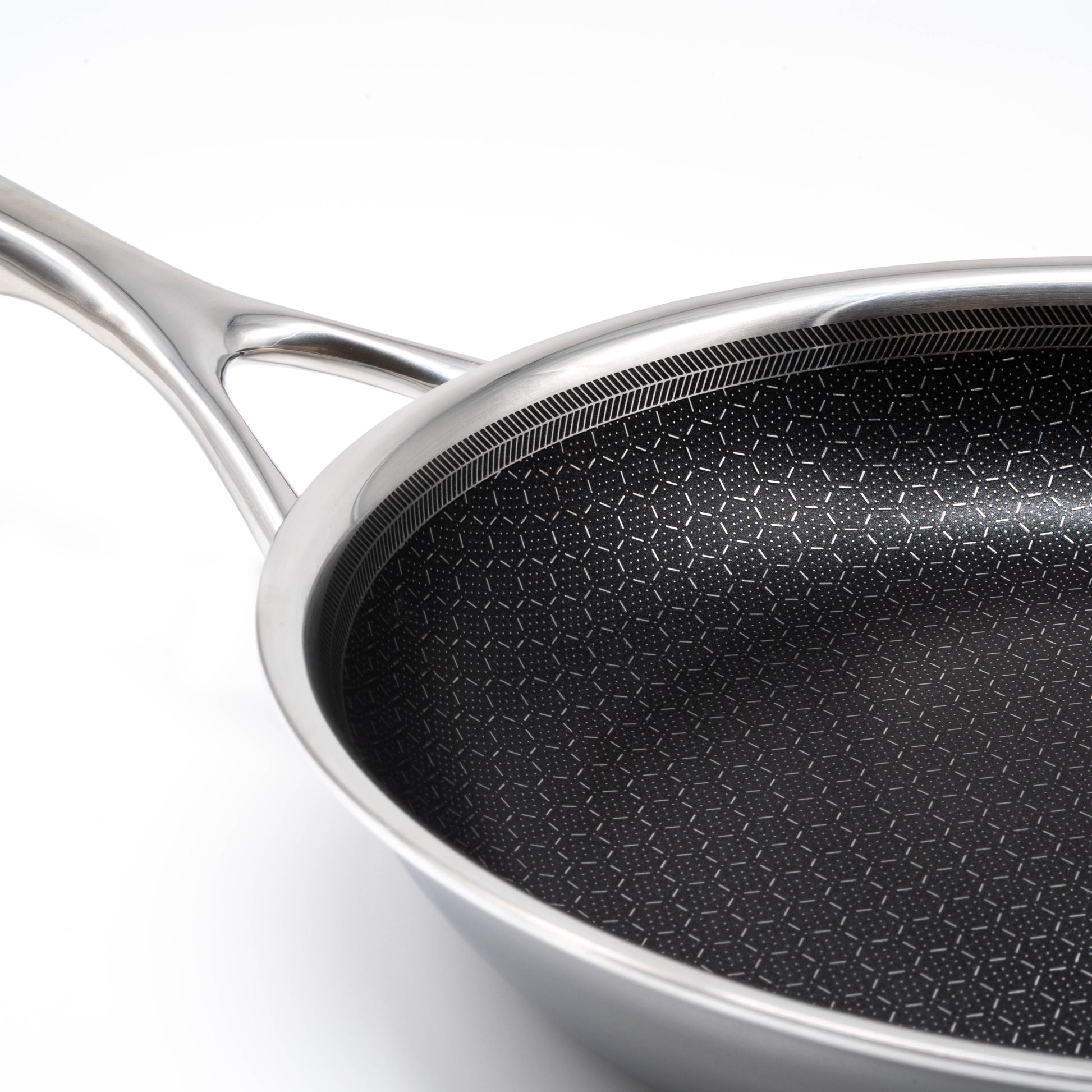 La poêle hybride De Matero Cookware utilise une technologie hybride avancée qui combine les avantages de l'acier inoxydable et d'un revêtement antiadhésif. Cela permet une saisie parfaite et un nettoyage facile, sans compromettre la durabilité. Grâce à cette technologie, vous profitez du meilleur des deux mondes : la robustesse et la durabilité de l'acier inoxydable ainsi que la facilité de libération des aliments d'un revêtement antiadhésif.